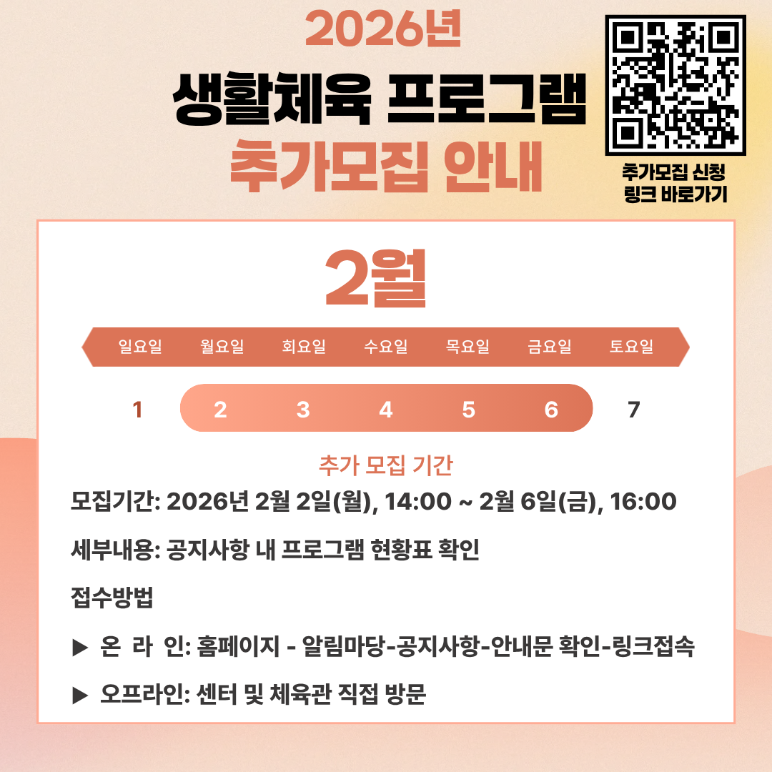 [ 모집중 ] 2026년 생활체육 프로그램 추가모집